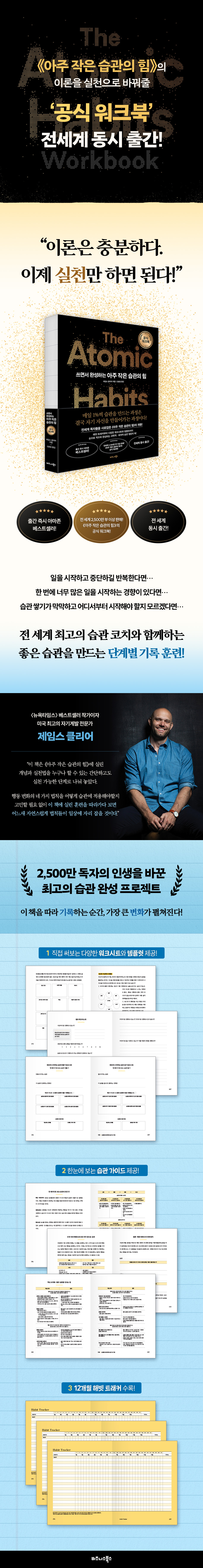 그의 인사이트가 담긴 《아주 작은 습관의 힘》은 출간된 후, 60개국 이상 번역, 전 세계 2,500만 부 이상 판매되며 수백만 명의 인생을 변화시켰다. 원서 제목인 ‘Atomic Habits’을 새긴 문신 인증 숏이 이어지는 것은 물론 이 책으로 건강, 커리어, 관계까지 변화시켰다는 독자들의 메시지가 쇄도했다. 저자는 이러한 독자들의 관심과 성원을 지켜보며 《아주 작은 습관의 힘》의 개념과 이론들을 더욱더 쉽고 빠르게 실천할 수 있도록 돕기 위해 다시 한번 책을 집필하기로 다짐한다.